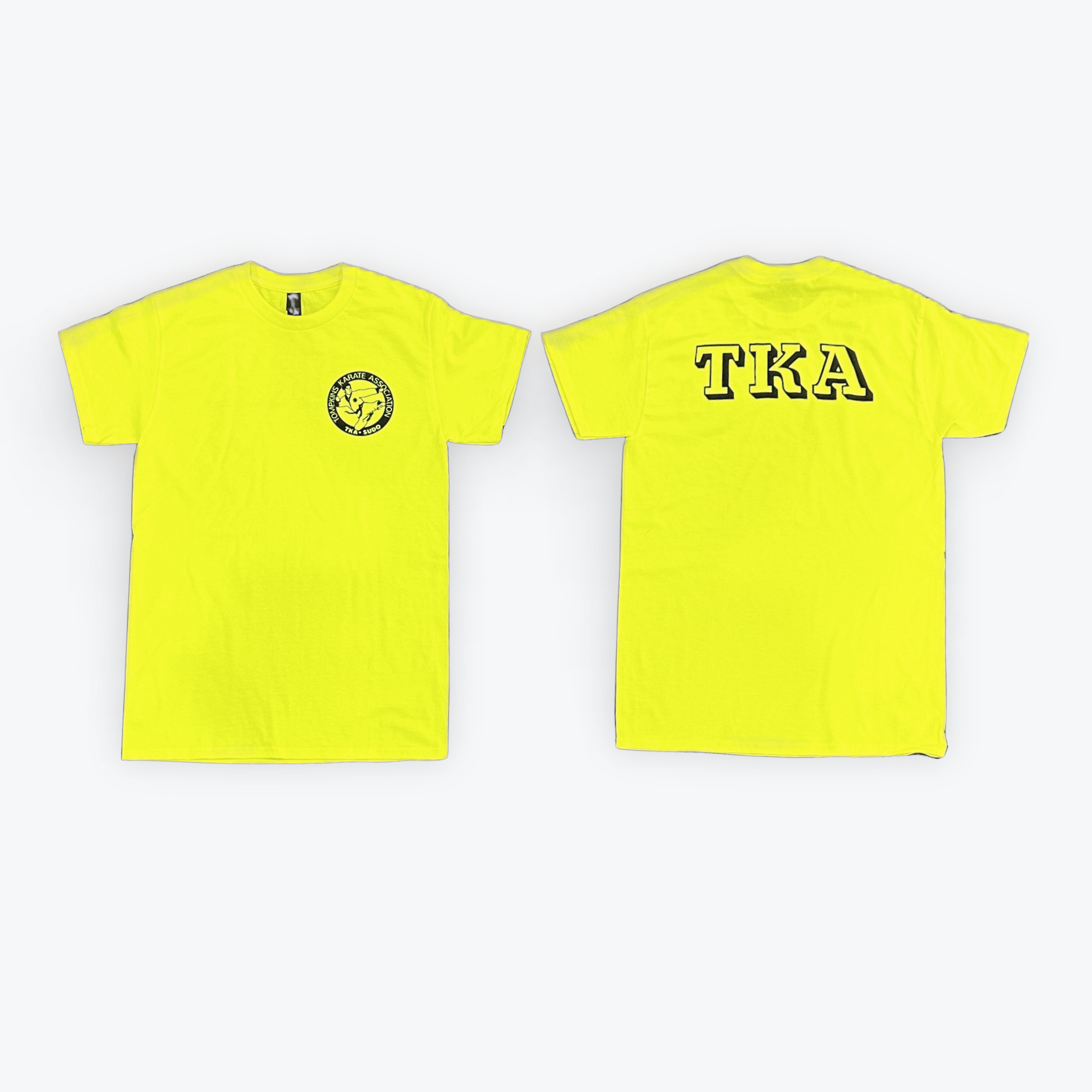 Safety Green Ultra Cotton T-shirt with the TKA logo on the front and the TKA letters on the back.